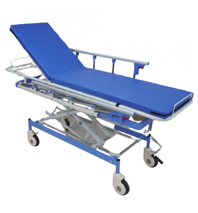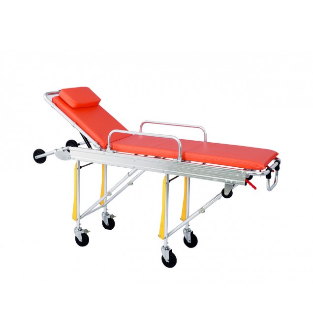 The SR 208 Ambulance Stretcher is a specially designed emergency transport unit ideal for ambulances, emergency response vehicles, and hospitals. Engineered with a lightweight yet sturdy aluminum alloy frame, this stretcher allows for quick deployment and easy maneuvering. It features an adjustable backrest, collapsible legs, secure patient straps, and a